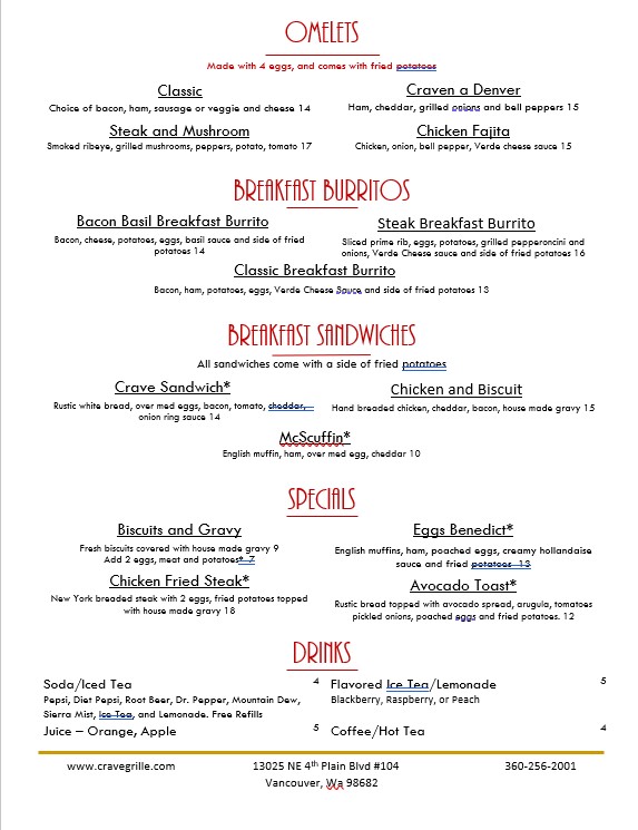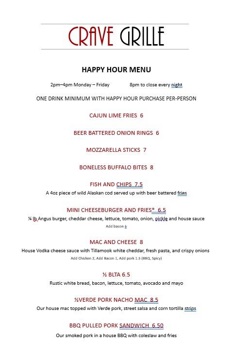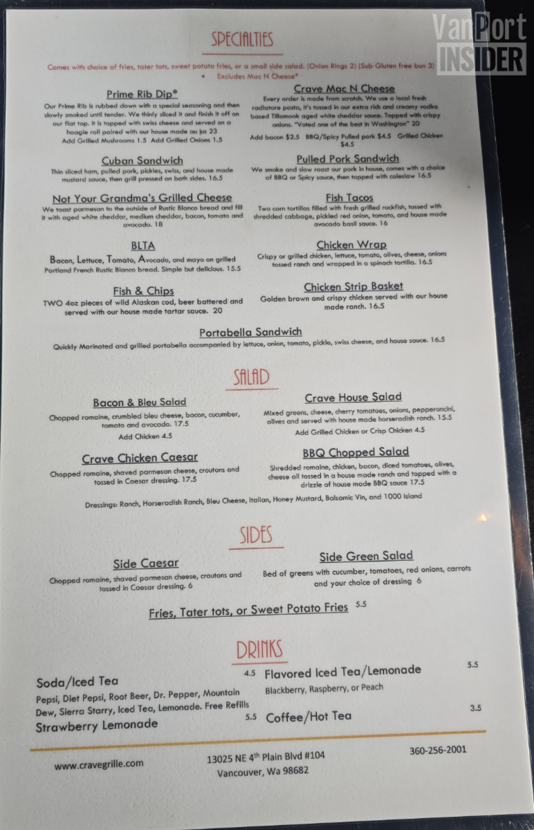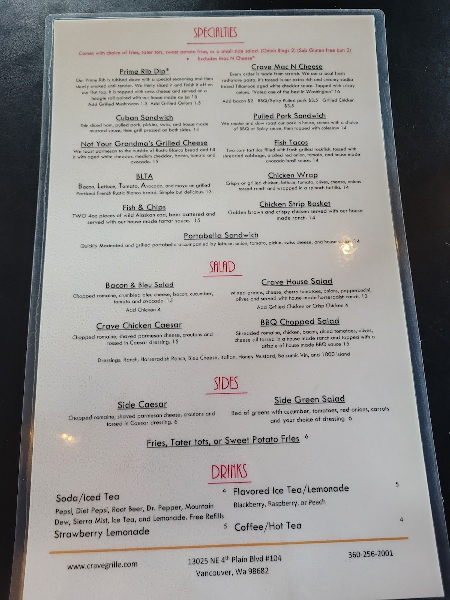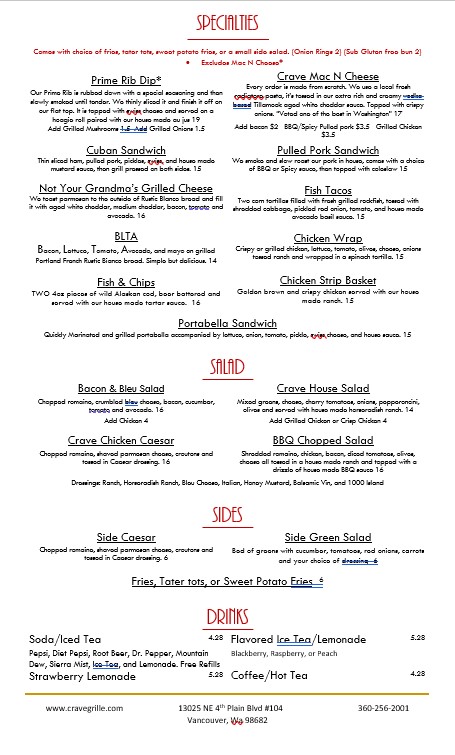 For a taste of what Crave Grille offers, feel free to call them at +1 360-256-2001 to learn more or check out their latest specials!