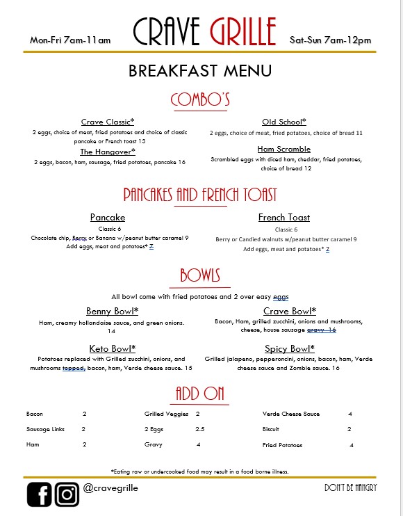 My girls and I finally tried Crave Grill for breakfast after hearing many fantastic reviews on social media. The menu was compact but packed a punch. They're happy to customize your meal to your liking. The food was out of this world, and although we had a tiny blip, it was sorted quickly, and they treated one of my friends to a free breakfast. Our waitress was an absolute gem: direct, witty, and brilliant at her job. They also serve a mean Bloody Mary, mimosa, or breakfast shot, which one of my friends swore by. We're excited to return and check out their happy hour menu. Wish we would have got more pictures, but we were too busy enjoying our food, lol.